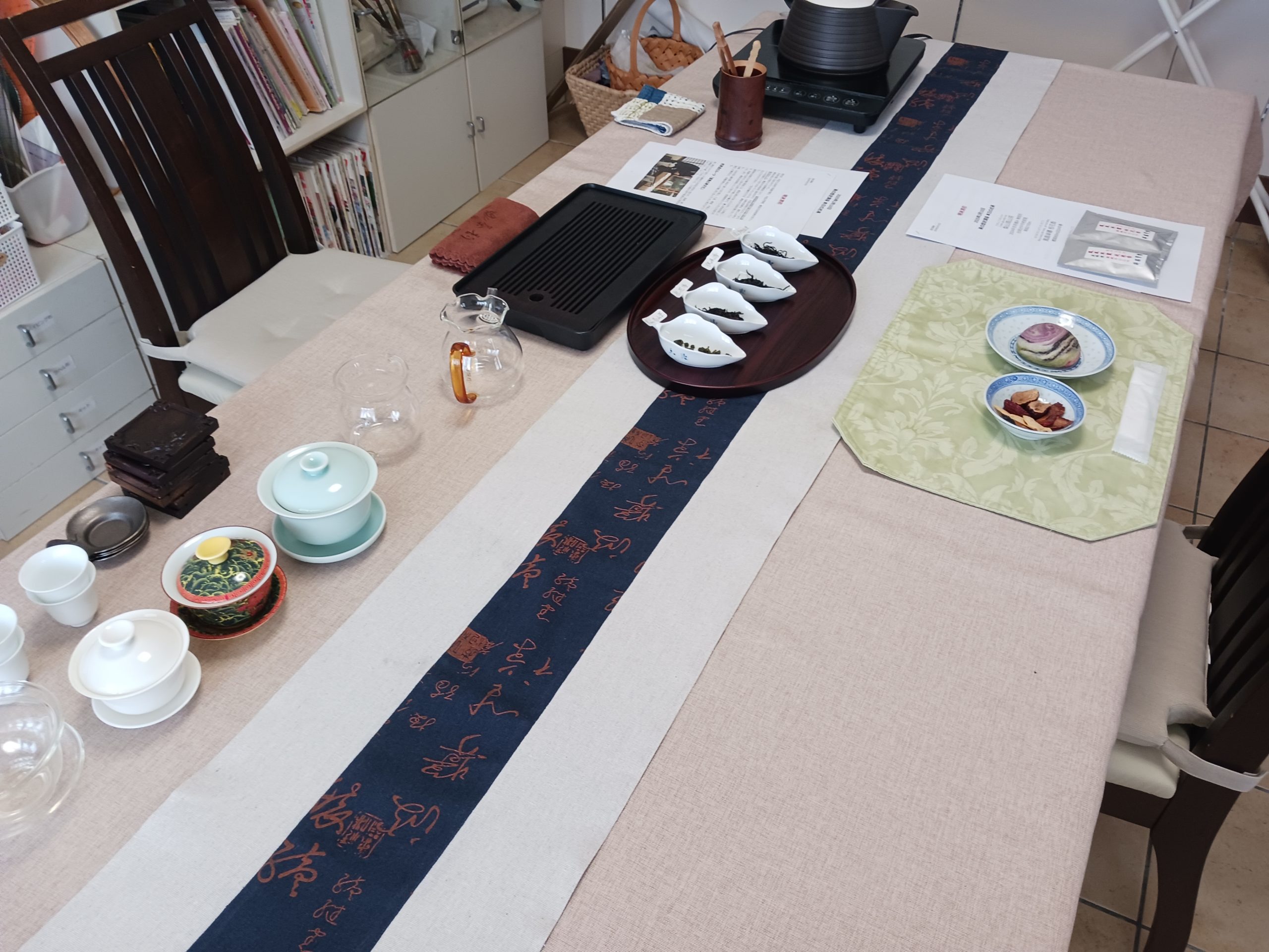 毎回4種類ほどのお茶を入れながらテキストでお茶の歴史について学びます。